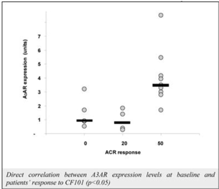 We believe that our drug candidates have certain unique characteristics and advantages over drugs currently available on the market and under development to treat these indications. To date, we have generated our pipeline by in-licensing, researching and developing two synthetic A3AR agonists, CF101 and CF102, and an allosteric modulator, CF602. For example, our technology platform is based on the finding that the A3AR is highly expressed in pathological cells, such as various tumor cell types and inflammatory cells. High A3AR expression levels are also found in peripheral blood mononuclear cells, or PBMCs, of patients with cancer, inflammatory and viral diseases. PBMCs are a critical part of the immune system required to fight infection. We believe that targeting the A3AR with synthetic and highly selective A3AR agonists, such as CF101 and CF102, and allosteric modulators, such as CF602, induces anti-cancer and anti-inflammatory effects. In addition, our human clinical data suggests that the A3AR is a biological marker and that high A3AR expression prior to treatment may be predictive of good patient response to our drug treatment. In fact, as a result of our research we have developed a simple blood assay to test for A3AR expression as a predictive biological marker. We have been granted a U.S. patent with respect to the intellectual property related to such assay and utilized this assay in our Phase IIb study of CF101 tor the treatment of RA.