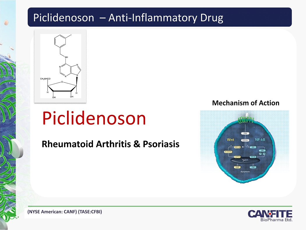 (NYSE American: CANF) (TASE:CFBI) 8 Piclidenoson Rheumatoid Arthritis & Psoriasis Piclidenoson – Anti - Inflammatory Drug Mechanism of Action