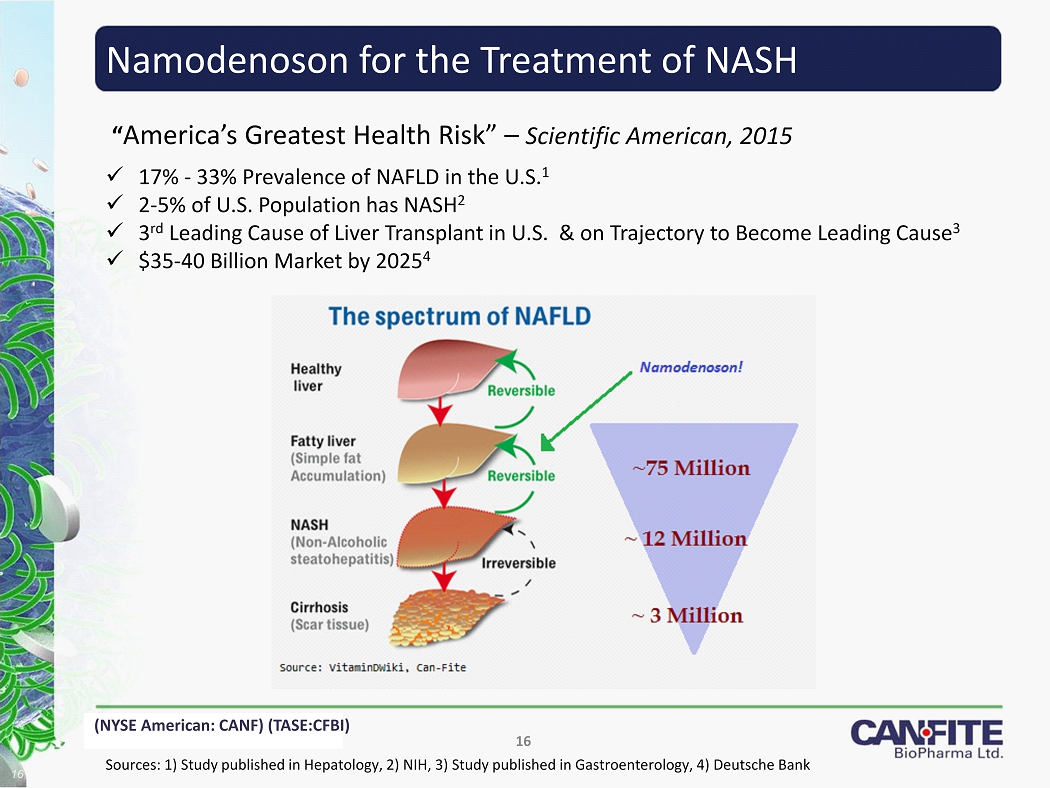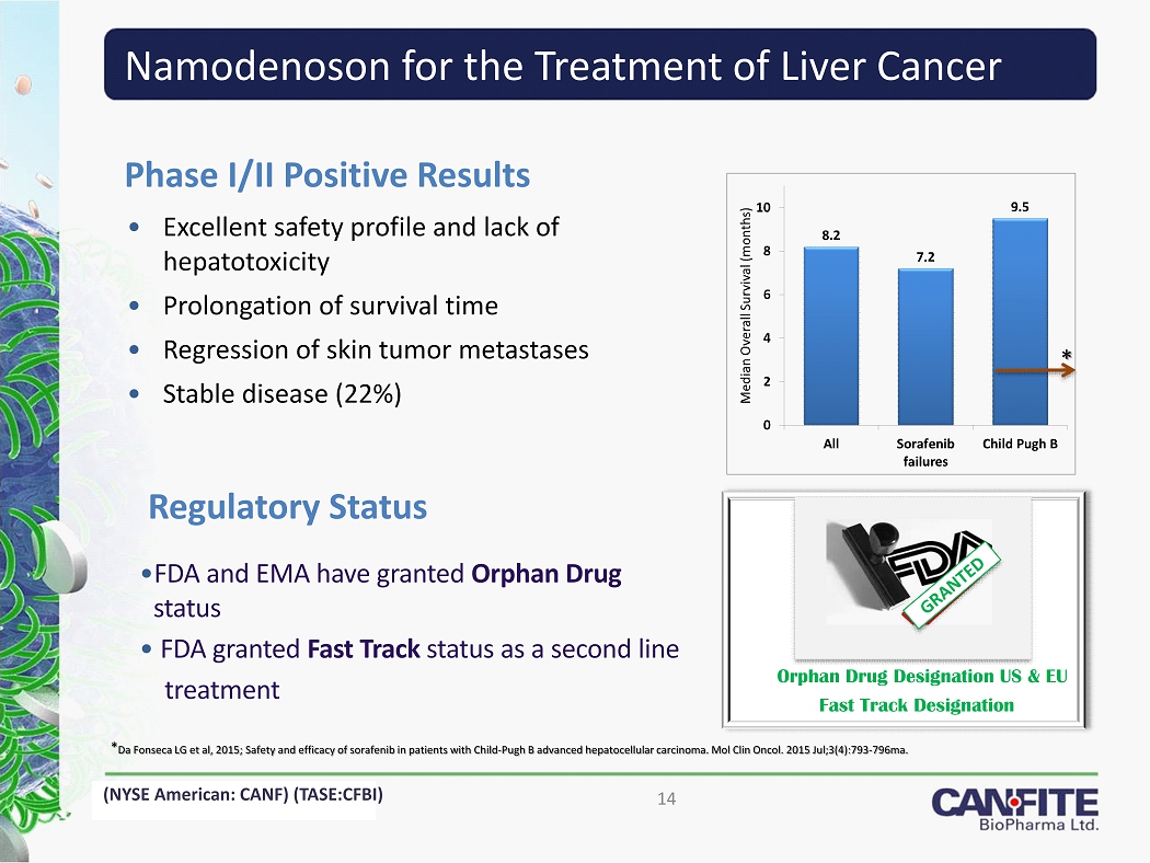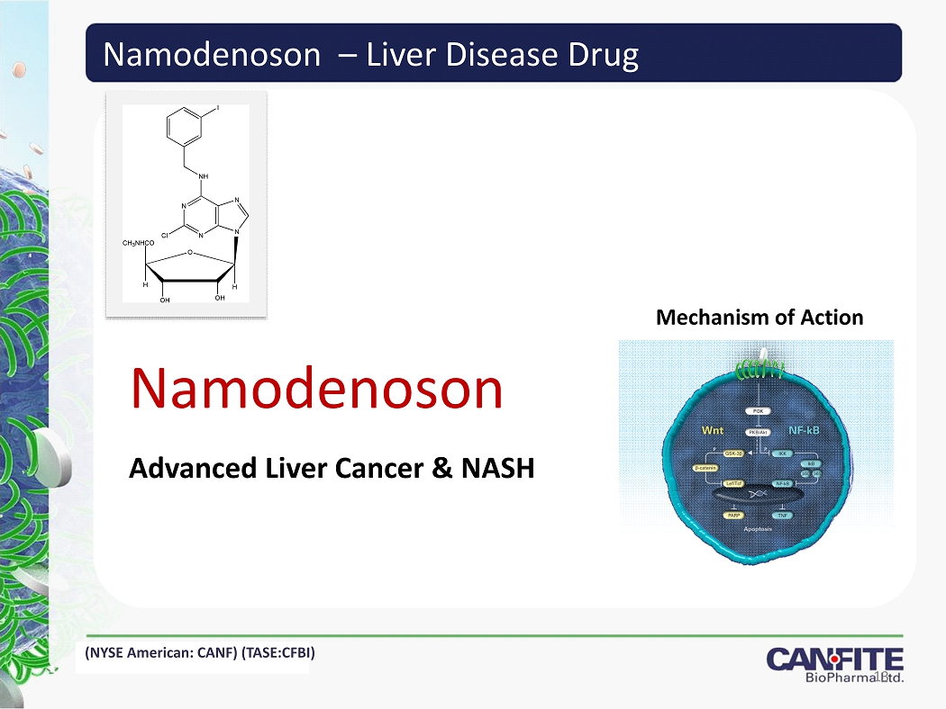 (NYSE American: CANF) (TASE:CFBI) 13 Namodenoson Advanced Liver Cancer & NASH Namodenoson – Liver Disease Drug Mechanism of Action