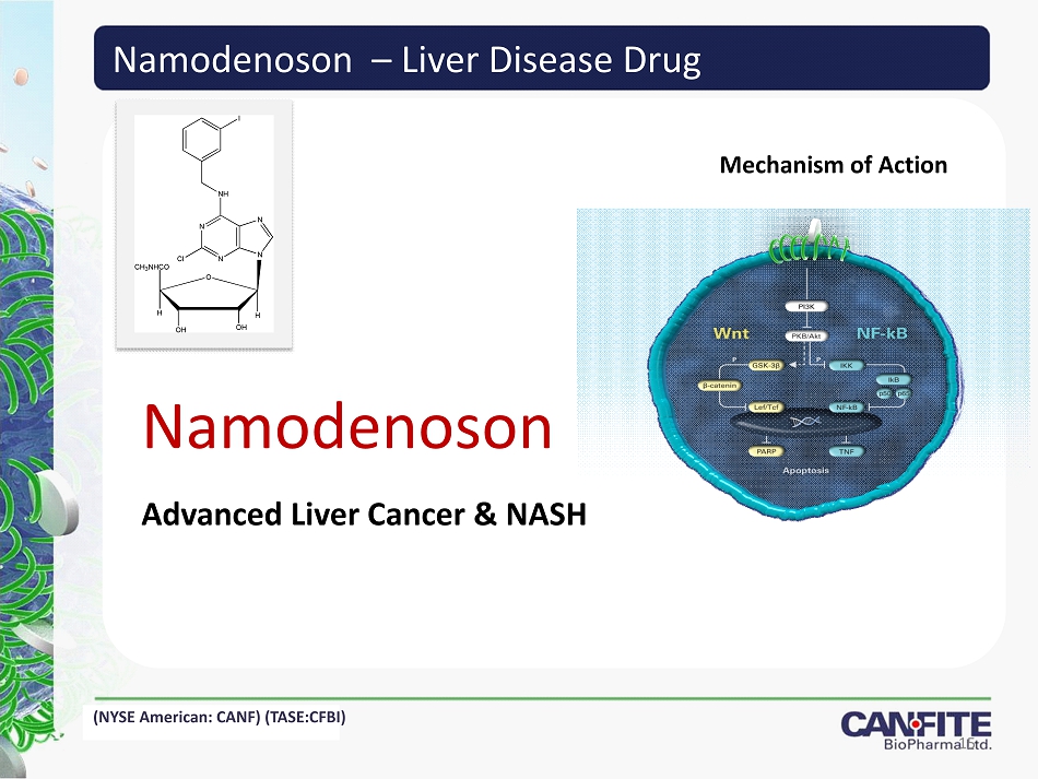 (NYSE American: CANF) (TASE:CFBI) 15 Namodenoson Advanced Liver Cancer & NASH Namodenoson – Liver Disease Drug Mechanism of Action