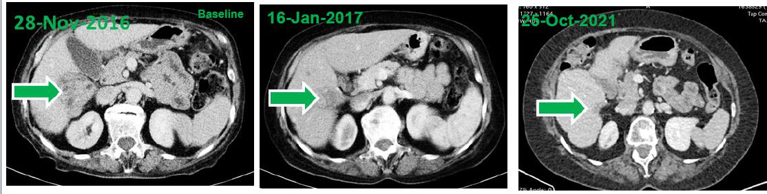 | · | At the time of reporting this case (5 years from treatment initiation), the response is ongoing as indicated by evaluation of liver functions and imaging studies. |